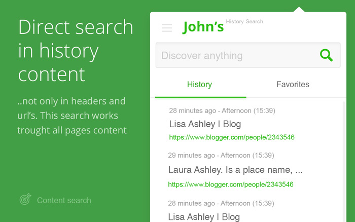 Tout d’abord Ambiently, une extension qui recommande des contenus relatifs aux pages visitées et d’autre part, History search, une extension Firefox qui permet de lancer des recherches sur le contenu des pages visitées et présentes dans l’historique de recherche de son navigateur. Une sorte de Google CSE pour son historique de recherche...