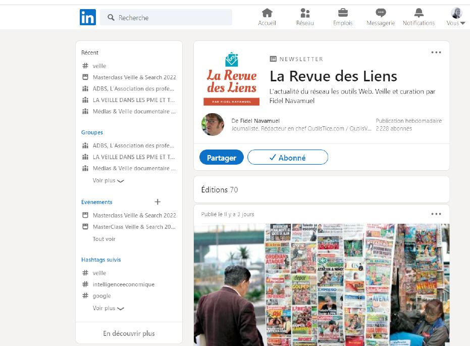 Figure 1. Exemple de newsletter intégrée à LinkedIn