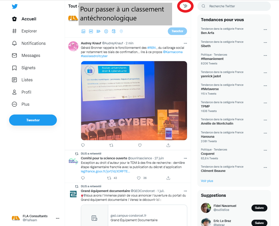 Cela va permettre de visualiser tous les tweets publiés par les comptes que l’on suit. Sinon, Twitter affiche juste une sélection.>