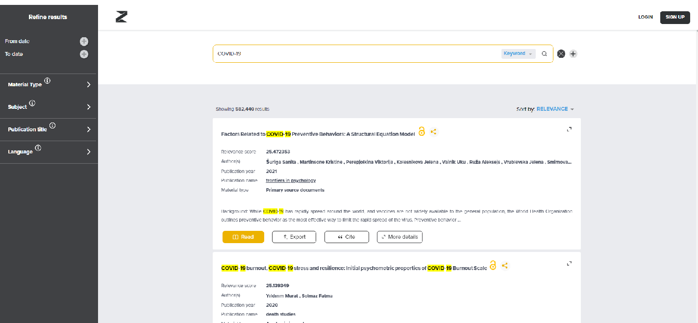 Le moteur permet de rechercher sur plus de 35 millions de publications (articles scientifiques, ouvrages académiques, etc.).
