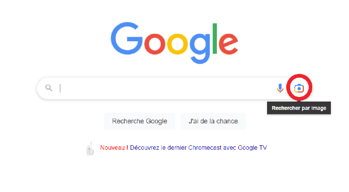 - utiliser l’icône « recherche d’image » disponible sur la page d’accueil de Google ou sur Google images puis entrer l’URL d’une image sur le Web ou charger une image depuis son ordinateur.