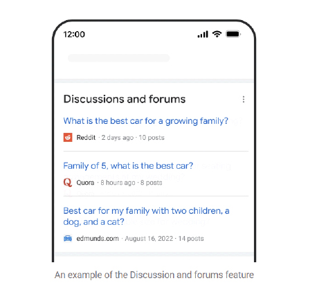 Lors de son événement annuel Search On, Google a annoncé une nouvelle fonctionnalité (disponible uniquement aux États-Unis pour le moment) appelée « Discussions et forums ». Google indique que cette fonctionnalité répond à une demande des internautes qui souhaitent voir émerger plus de contenus de ce type.