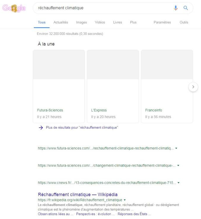 Figure 1. Exemple de résultats « caviardés » sur Google - source: lemonde.fr
