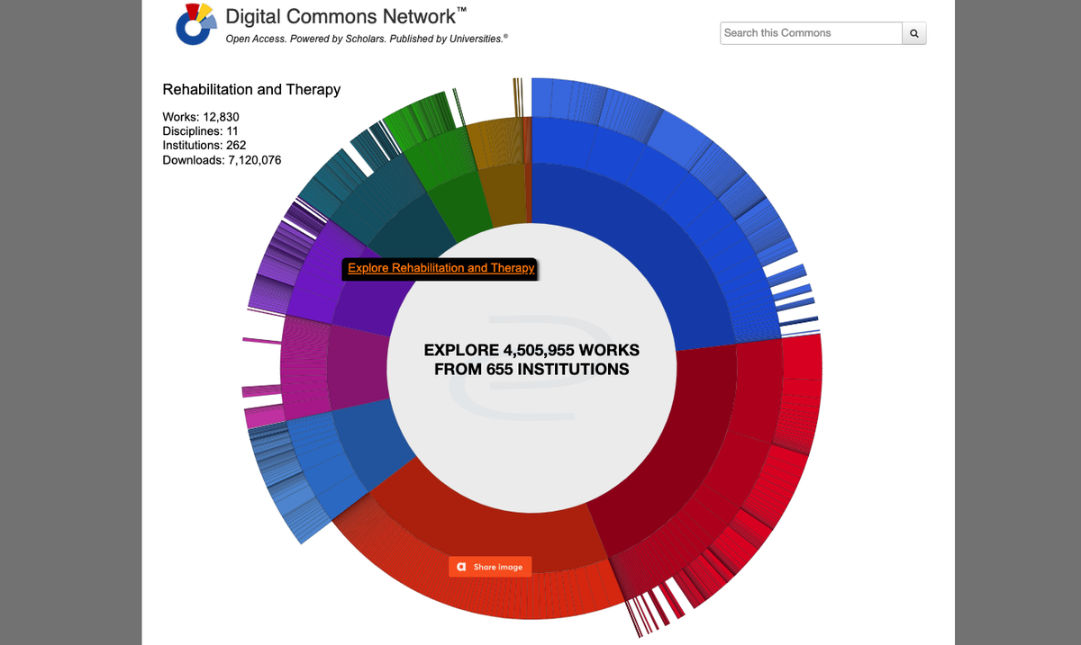 Figure 1 : La page d’accueil du Digital Commons Network présente les recherches sous forme de grande roue.