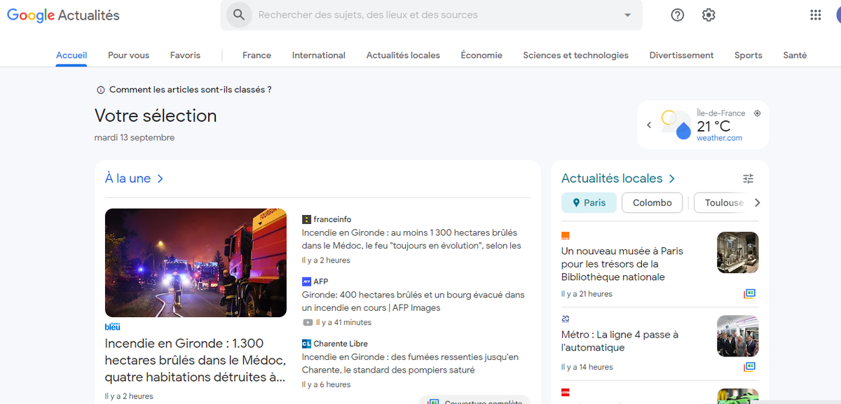 Attention à bien basculer sur les différentes versions locales de Google Actualités