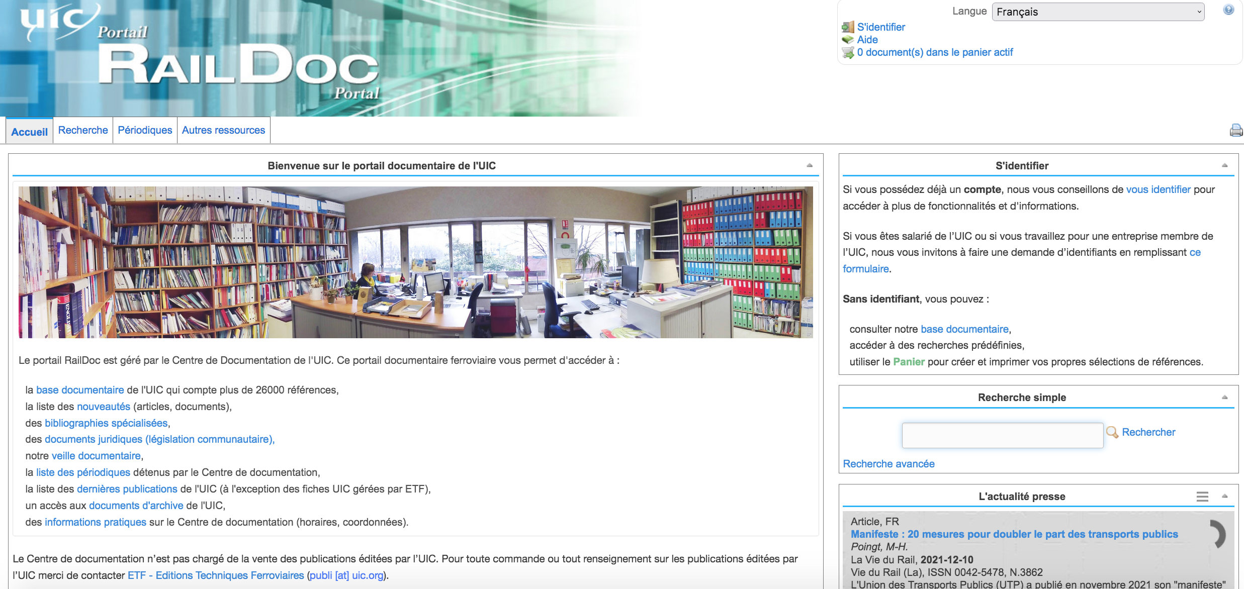 En ce qui concerne les veilles documentaires, le portail en propose en cinquantaine comme par exemple Railway noise / Bruit ferroviaire, High speed rail in Germany / La grande vitesse en Allemagne ou encore Automatic Train Operation (ATO) / Train autonome.