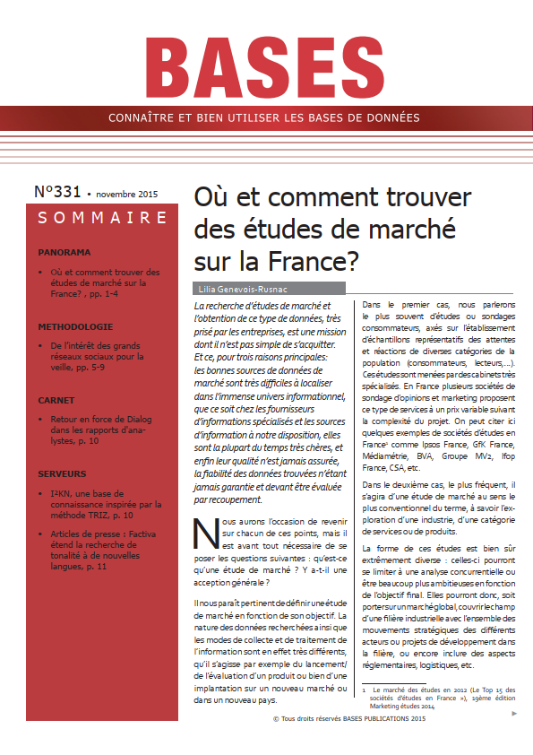 • Où et comment trouver des études de marché sur la France? , pp. 1-4