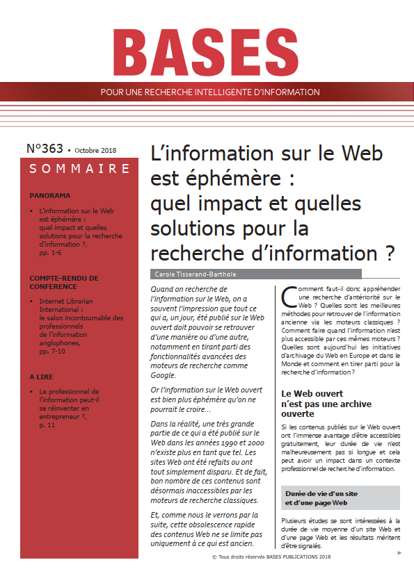 • L’information sur le Web est éphémère : quel impact et quelles solutions pour la recherche d’information ?, pp. 1-6