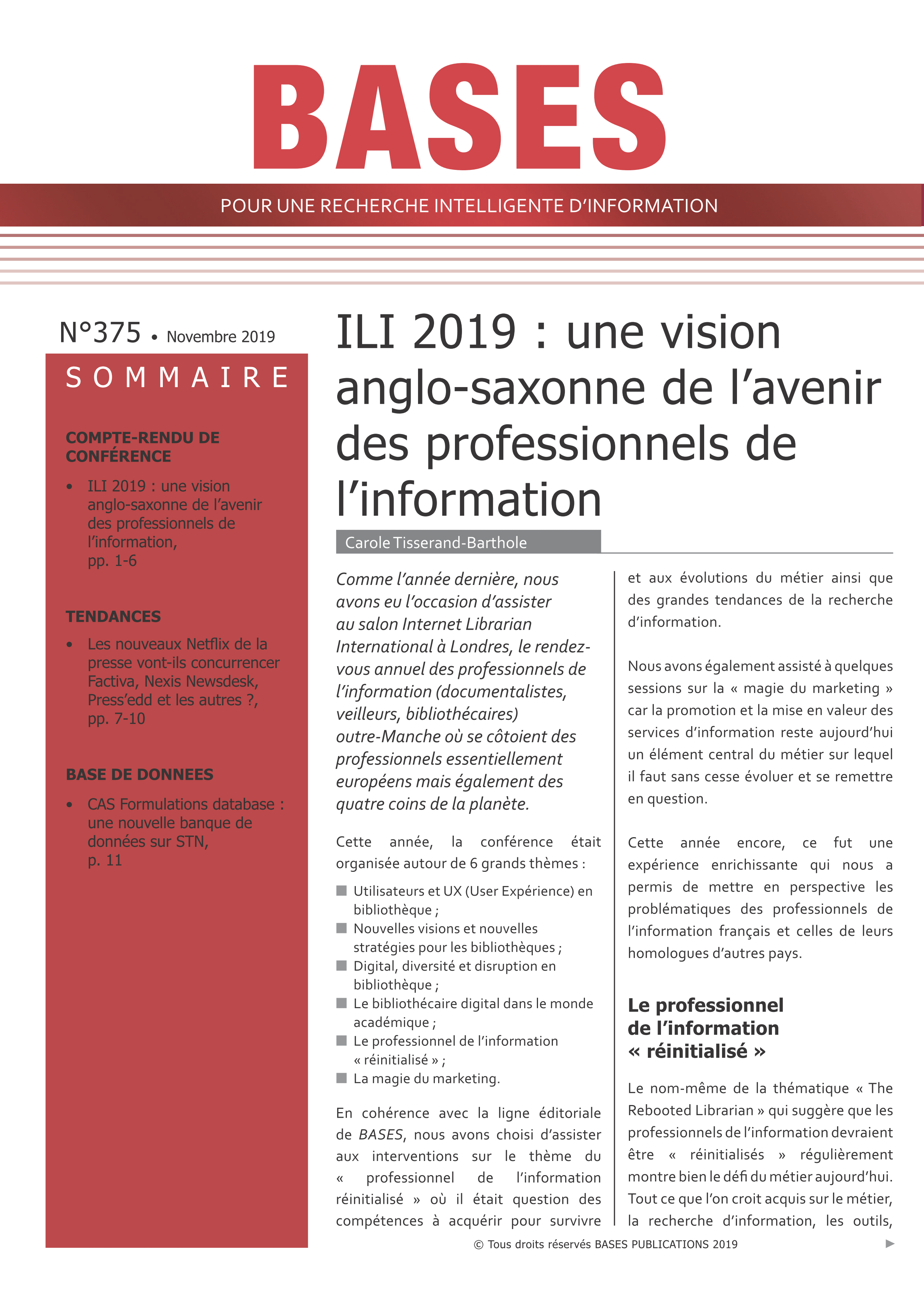 • ILI 2019 : une vision anglo-saxonne de l avenir des professionnels de l information, pp. 1-6