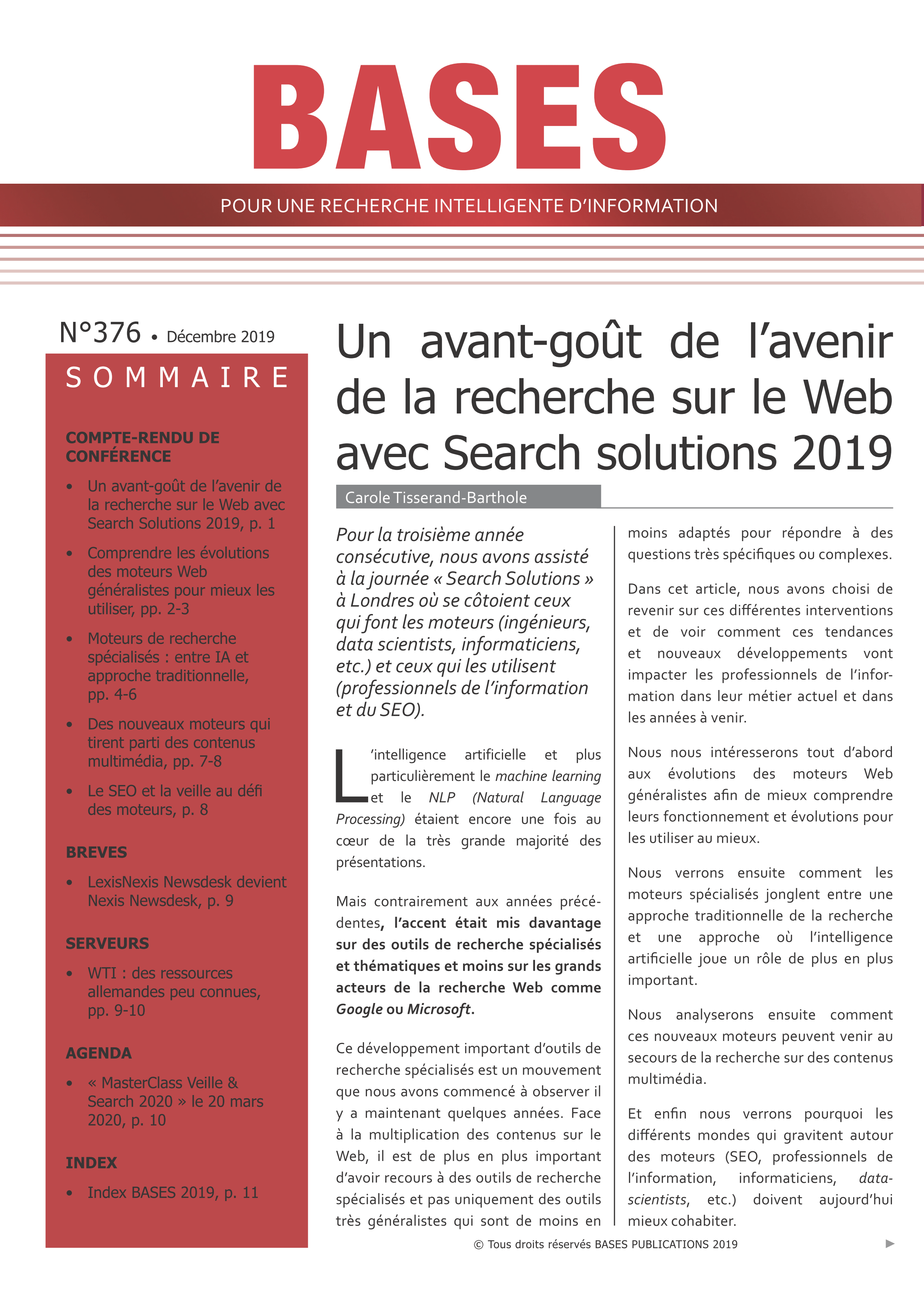 • Un avant-goût de l avenir de la recherche sur le Web avec Search Solutions 2019, p. 1