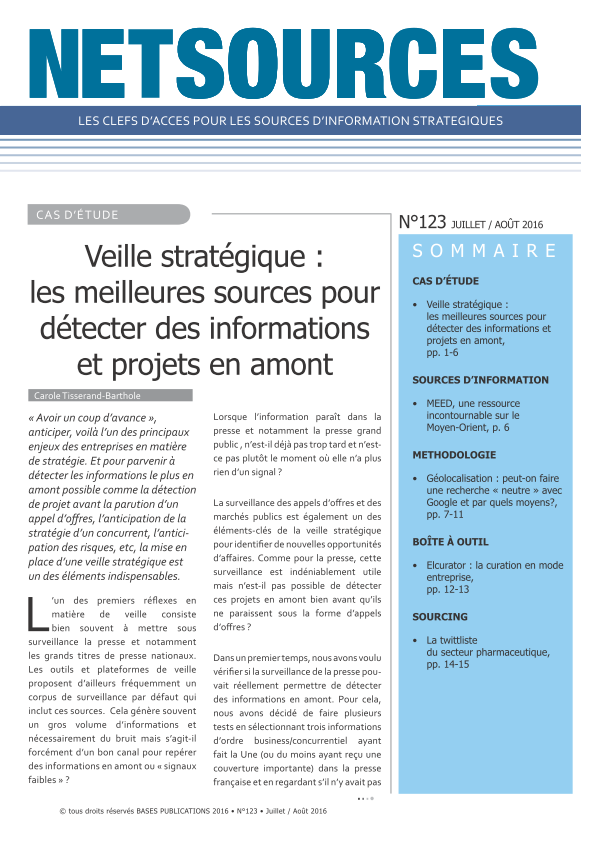 - Veille stratégique :les meilleures sources pour détecter des informations et projets en amont, pp. 1-6