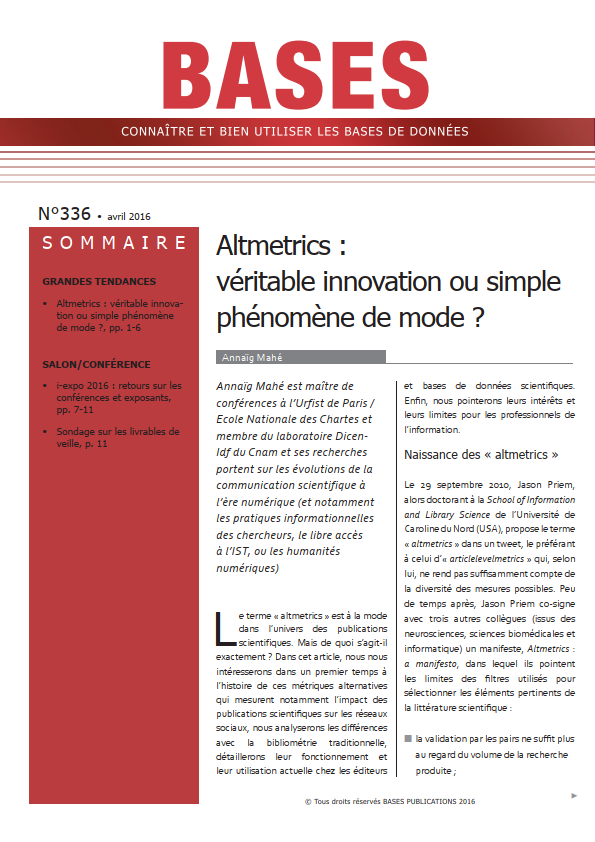 • Altmetrics : véritable innovation ou simple phénomène de mode ?, pp. 1-6